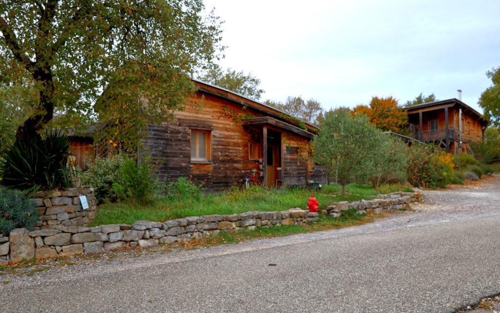 À une petite dix petites minutes de la Villa Chrysalide, niché entre les collines verdoyantes de la commune de Berrias-et-Casteljau et les gorges du Chassezac, se trouve un lieu pas tout à fait comme les autres : le Hameau des Buis. Ici, l’écologie, l’éducation et la convivialité ne sont pas des concepts, mais un véritable art de vivre. Ce village coopératif pionnier attire les curieux du monde entier, séduits par son mode de vie durable et son architecture harmonieuse, intégrée à la nature.