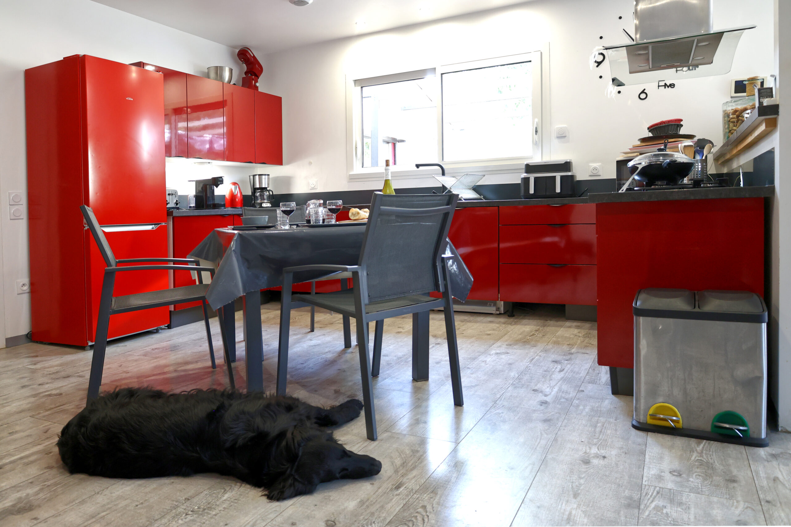 A l’intérieur, au rez de chaussée, vous passerez du temps dans la pièce de vie chaleureuse, toute l’année, grâce à la climatisation et le poêle à granules. Toutes les chambres sont climatisées. Dans les chambres du bas – la chambre n°1, n°2 et n°3 – vous disposez de trois lits en 160, avec salle d’eau privative et TV. L’une d’entre elle est aménagée pour les personnes à mobilité réduite. Buanderie avec lave-linge et sèche-linge à disposition. À l’étage, vous accédez à une chambre avec un lit en 140 et deux lits en 80, une deuxième chambre avec 4 lits en 80 et d’un espace avec canapé, TV et jeux pour les enfants. Salle d’eau à l’étage avec une douche italienne et lavabo double. WC indépendants à chaque niveau.